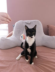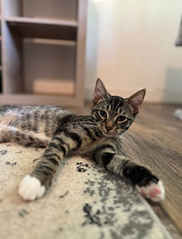 Meet Charlie. With her spunky playfulness and love of booty scratches and nuzzling in your neck, she is sure to become your instant bestie. As a kitten, she must be adopted as a pair or into a home with another cat to avoid Single Kitten Syndrome. Charlie is litter trained and dewormed. Upon adopting Charlie, a date must be scheduled for you to get her spayed (we utilize the voucher system by That's What Friends are For providing spay and neuters at a very discounted rate).